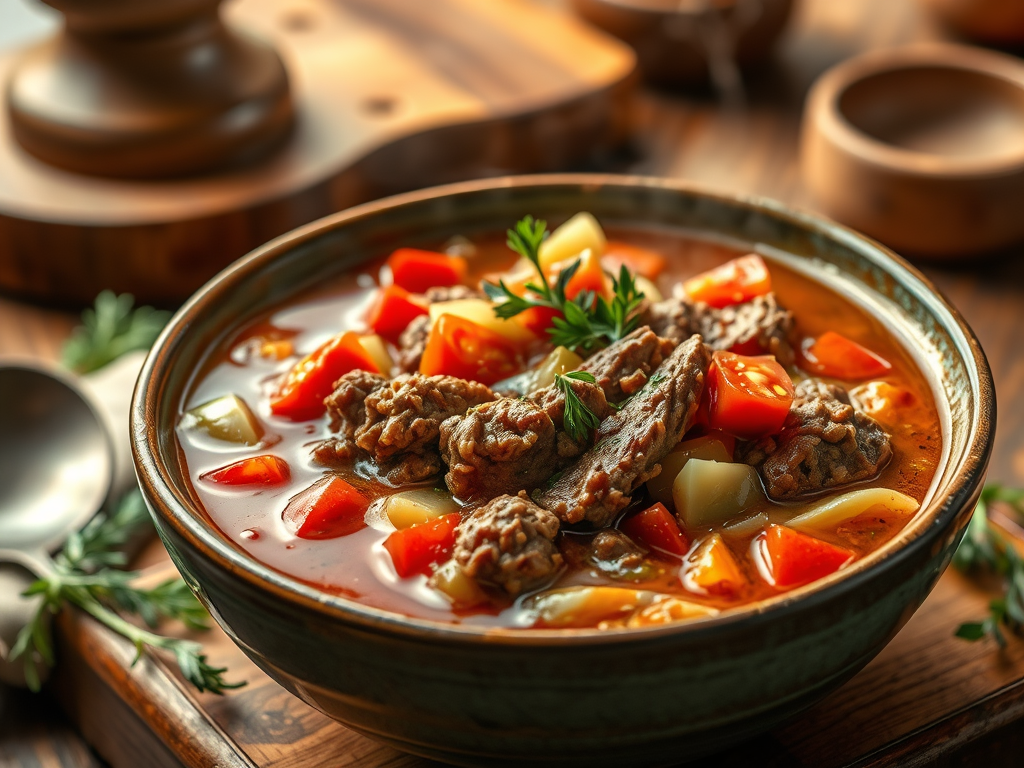 2. Add cabbage, tomatoes, and beef broth.