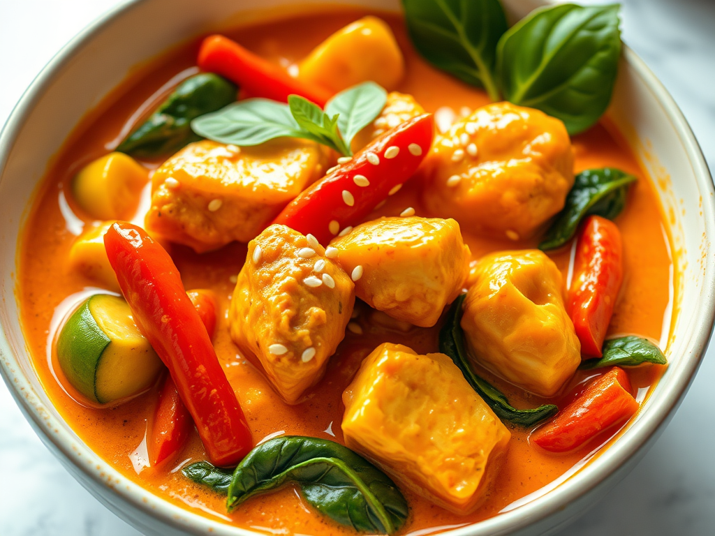 If you love rich, aromatic Thai flavors, this Keto Thai Red Curry Chicken is a must-try! Made with tender chicken, vibrant veggies, and a creamy, spicy coconut-based sauce, this dish is low-carb, full of healthy fats, and packed with bold flavor! Serve it with cauliflower rice for a satisfying keto-friendly meal!