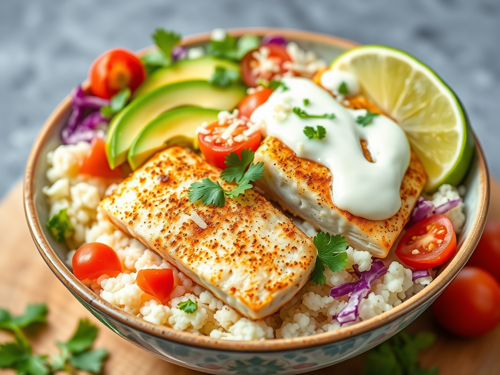 🐟🔥 Low-Carb Fish Taco Bowl – Fresh, Zesty & Keto-Friendly! 🌮🥑